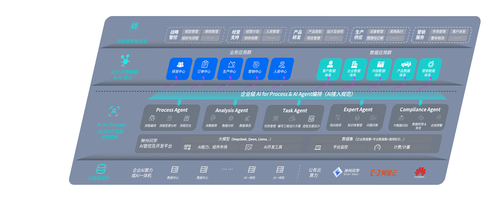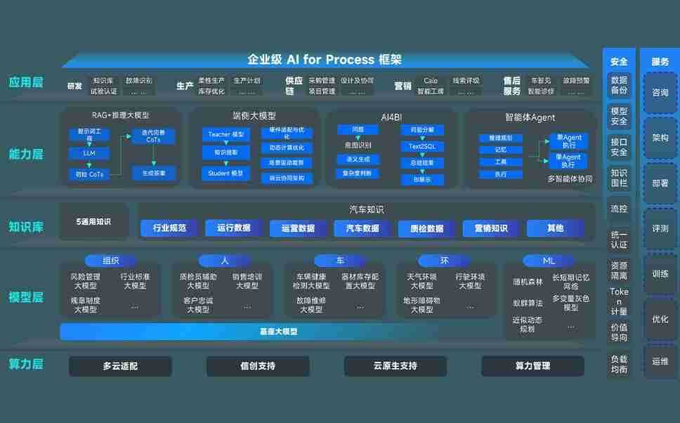 星耀国际问学智车解决方案是一套基于AI技术的汽车行业智能化系统,,覆盖从底层算力到顶层AI应用的全栈方案。。方案由算力层、、、模型层和应用层组成:算力层,,,,方案支持多种一体机配置,,具备云端灵活部署、、、、多云适配以及动态优化计算资源的能力;模型层,,,,星耀国际问学平台版提供了企业级AI应用一站式构建与管理平台,,,支持基于后训练强化技术的汽车企业专属模型的训练、、、、评测和运营;应用层,,星耀国际问学DeepSeek版提供包括超级员工、、、智能招采、、智能营销、、、智能客服、、AI for BI等一系列解决方案,,可助力汽车行业实现数字化转型,,,让管理更智能、、、、响应更敏捷。。